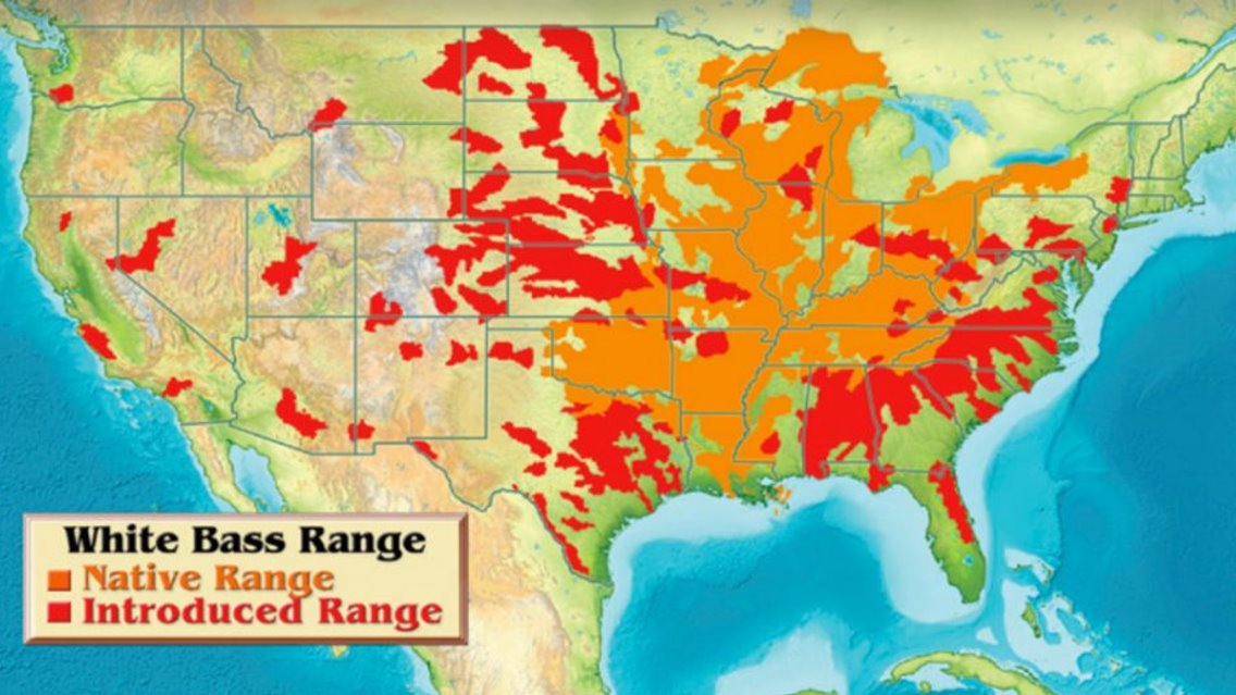 Native Range: The native range of white bass includes the central United States, from the Mississippi River drainage to the Great Lakes.