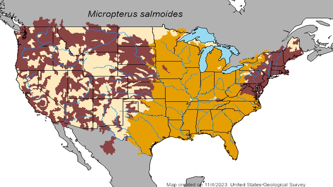 Native Range: The range of largemouth bass within North America extends from the St. Lawrence River, the Great Lakes, Hudson Bay (Red River), and into the Mississippi River basin. Largemouth bass are also found in Atlantic drainages from North Carolina to Florida and into northern Mexico.